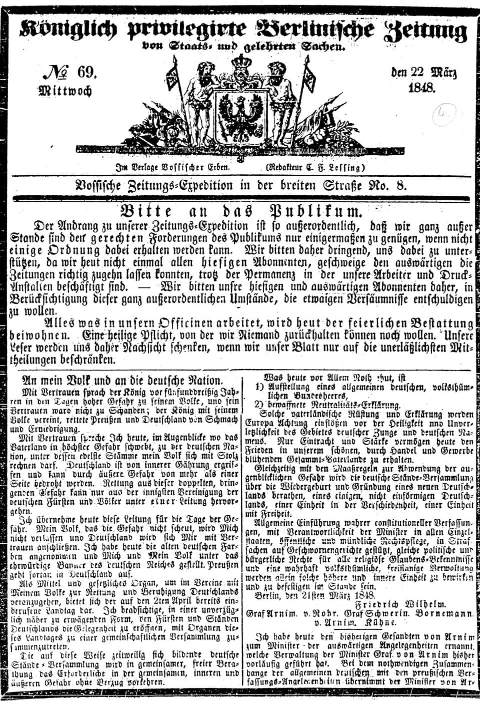 In der Vossischen Zeitung des 19. Jahrhunderts kämpfte Willibald Alexis für die Pressefreiheit. Wir führen diesen Kampf heute gegen die Algorithmen. Wir lassen uns nicht von den „Trusted Flaggers“ vorschreiben, was eine „gelehrte Sache“ ist.
